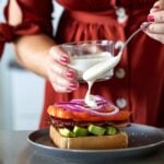 The simple to make spread is perfect for almost any hearty sandwich. It comes together with 3 ingredients and is put together in under 5 minutes.